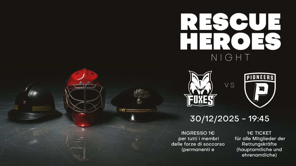 Anlässlich des leztes Heimspiels im Jahr 2025, das am 30. Dezember gegen die Pioneers Vorarlberg stattfindet, hat der HCB die Rescue Heroes Night organisiert – ein Abend, der allen Mitgliedern der Rettungskräfte, sowohl hauptberuflichen als auch freiwilligen, gewidmet ist, als Dank für ihre wertvolle Arbeit für die gesamte Gemeinschaft. Sie müssen sich lediglich im Vorverkauf oder direkt an den Kassen mit einem Dokument (z. B. Mitgliedsausweis, Dienstausweis usw.) ausweisen, um das Ticket für 1 € zu erhalten.